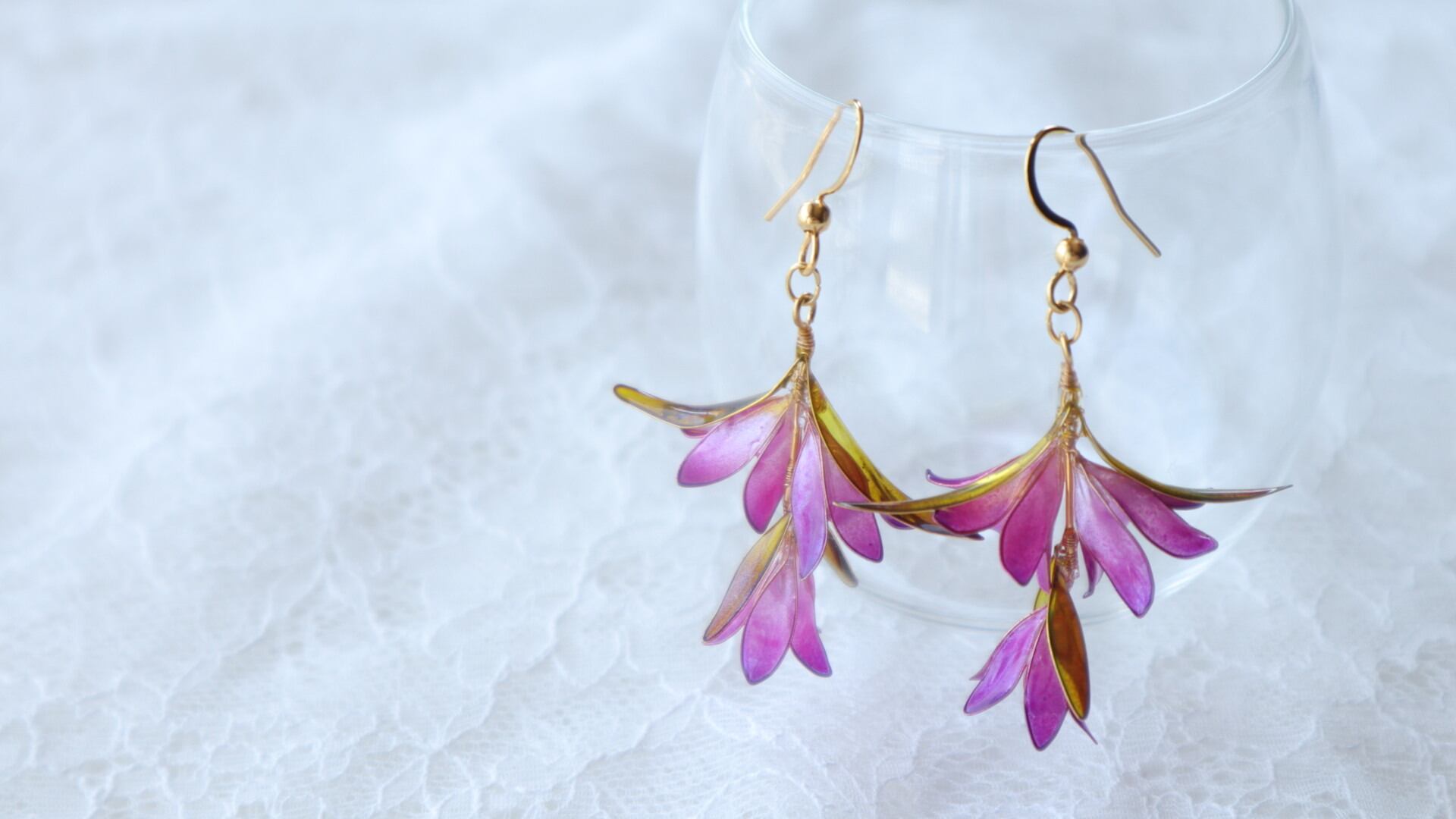 ピンクの竜胆の耳飾り